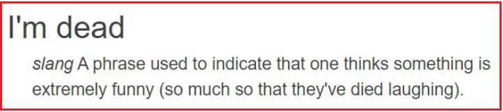 俚语:用来表示某人认为某事非常好笑(好笑到他们已经笑死了)