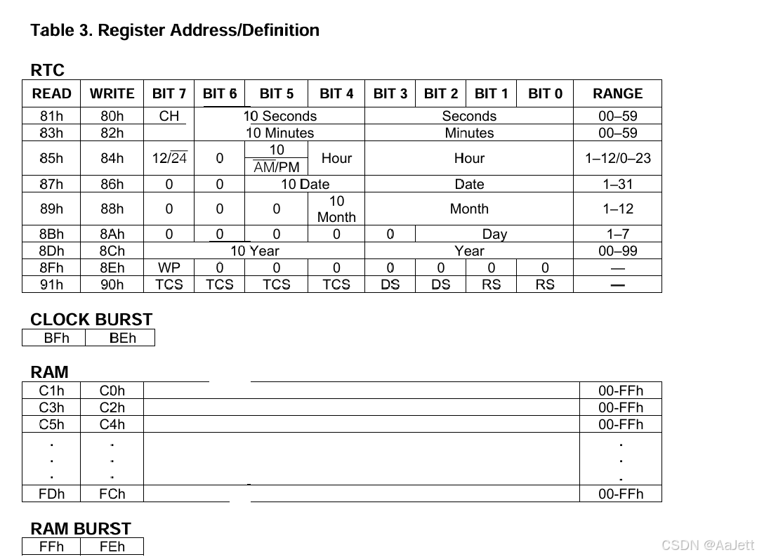 1、秒寄存器(80H和81H)的位7 (CH)为时钟暂停标志。