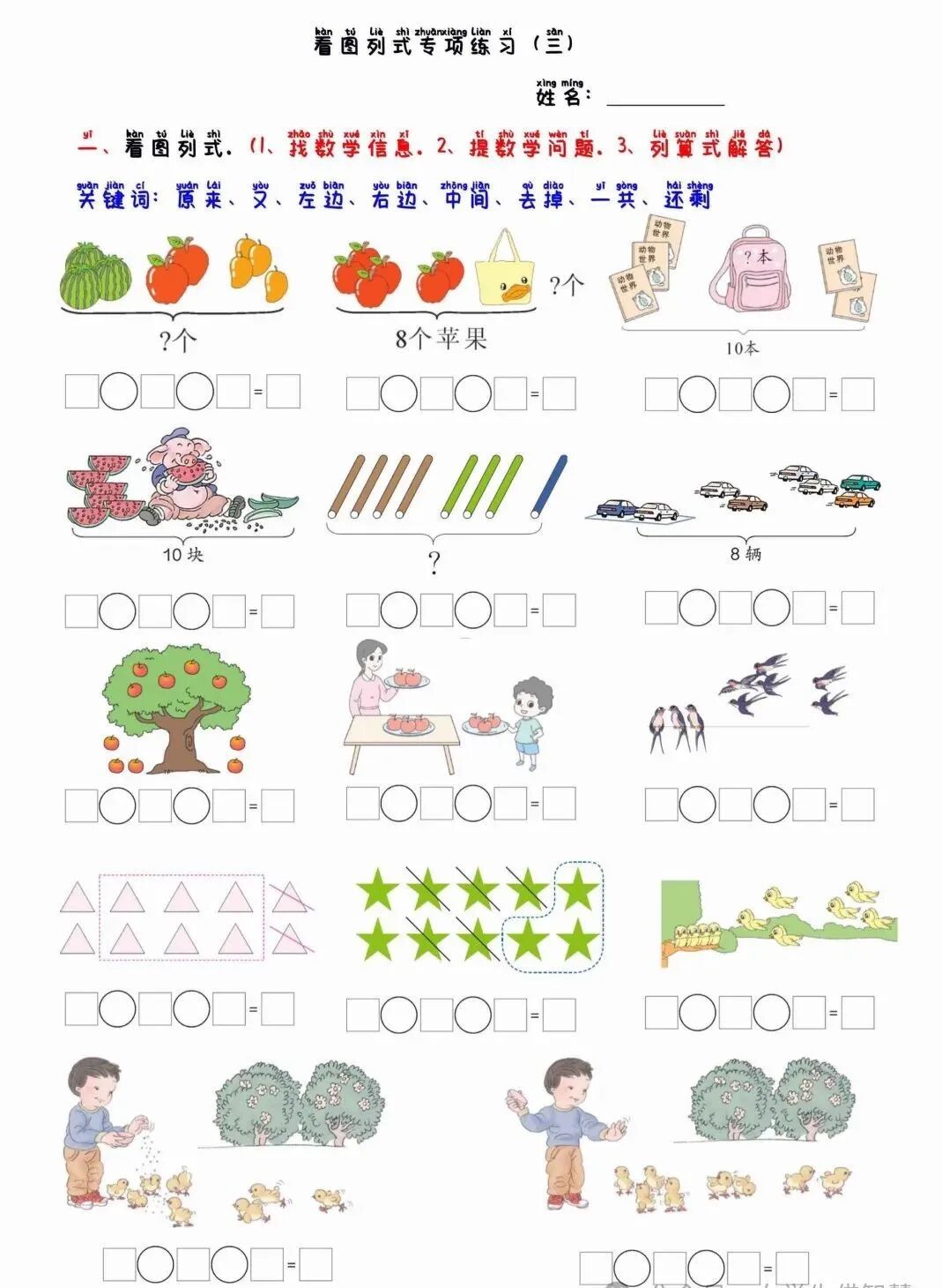 小学一年级数学题圈一圈算一算(小学一年级数学圈一圈,算一算例题)回复 上资源册 就可获得 人教版本的各年级数学上册计划课件 的全部资料 nbsp nbsp 2023 小学语文数学 1 6 年级上册教案课件 PPT 下载 人教版数学一 六年级上册教材课后习题参考答案 nbsp 文末附下载链接 点点在看 让很多人看到 nbsp 看图列式 混合运算 无答案 1 上 数学 链接 https pan