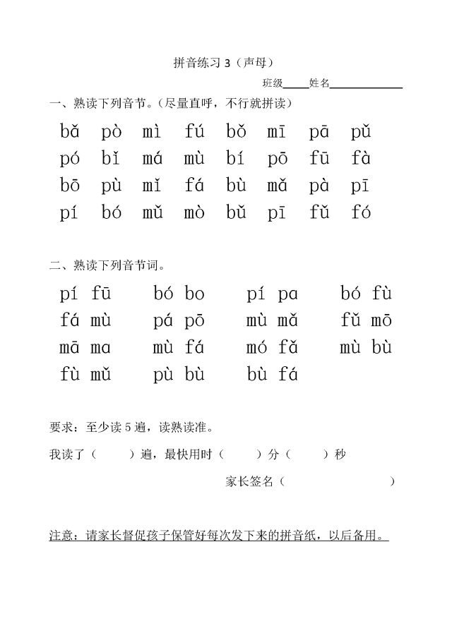 例: b-ā-bā巴 b-ō-bō波 ch-ē-chē车