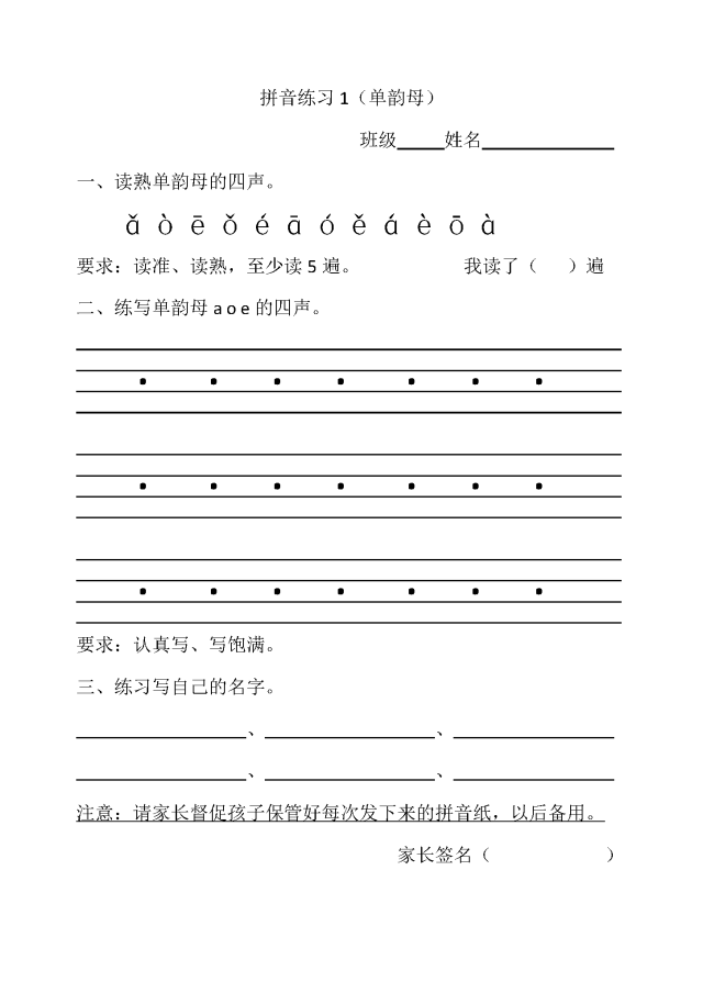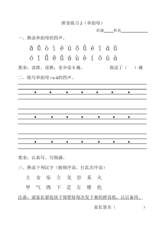 调号一定要加在韵母(a,o,e,i,u,ü)上,见到a母莫放过,没有a母找o、e, i、u并列标在后,i上标调把点抹。