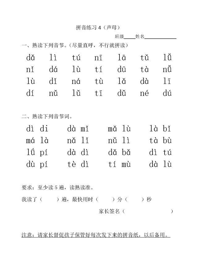 易混淆的声母:(1)b 和 d (2)p 和 q