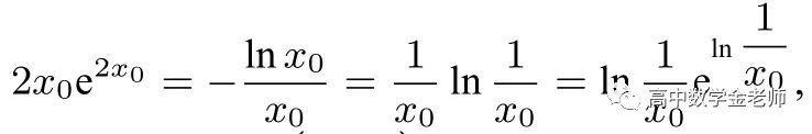 进一步有: e2x−lna≥ 2 + ln 2x −ln a,继续变形同构:[e2x−lna −(2x −ln a)−1]+[eln 2x −ln 2x −1]≥ 0,令g(x)=ex −x −1,所证即为g(2x −ln a)+g(ln 2x)≥0,显然g(x)≥0 恒成立,故g(2x −lna)+g(ln 2x)≥0 成立,等号成立条件为2x −lna=ln 2x=0,即![]()