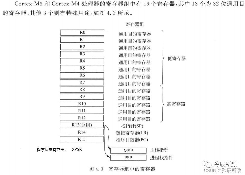 Cortex-M的寄存器的相关内容,这里我们再简单说明一下: