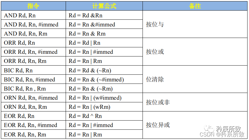为目的寄存器,用来存储运算的结果;Rn 第一个操作数的寄存器Operand2第二个操作数 ,其可以有3种操作源:1– 立即数 2– 寄存器 3– 寄存器移位