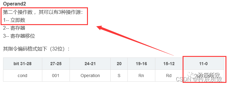 其指令编码格式如下(32位):|bit 31-28 |27-25 |24-21 |20 |19-16 | 15-12 |11-0 |