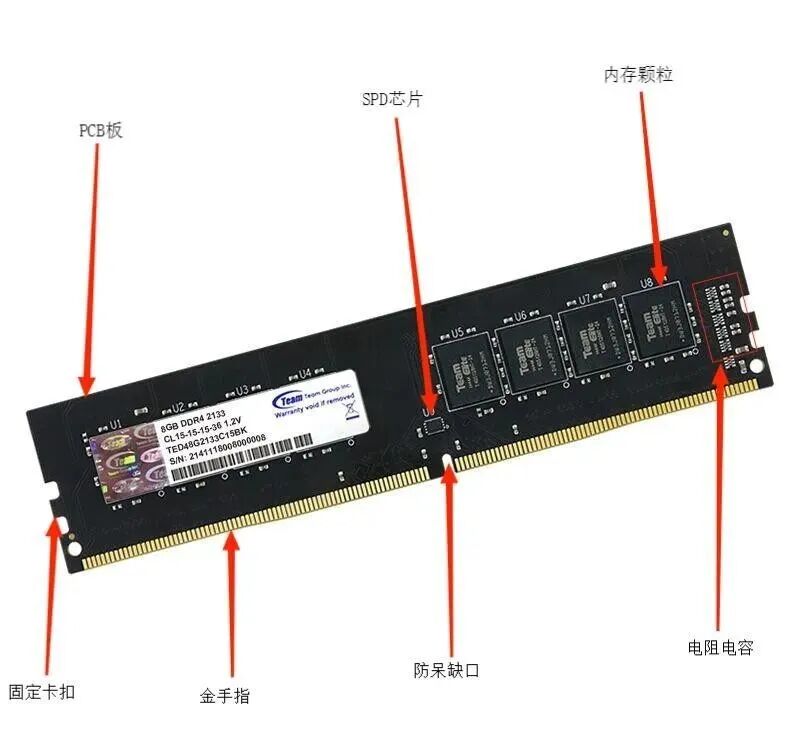 一般见到的内存芯片是条状的,也叫”内存条”,它需要 插在主板上的内存槽中才能工作。还有一种内存叫作”高速缓存”,英文名是”Cache”,一般已经内置在CPU中或者主板上。