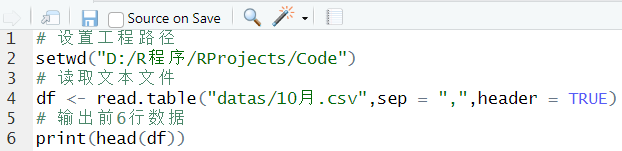 下面使用read.table()函数读取“10.csv”文件,运行RStudio,编写如下代码。