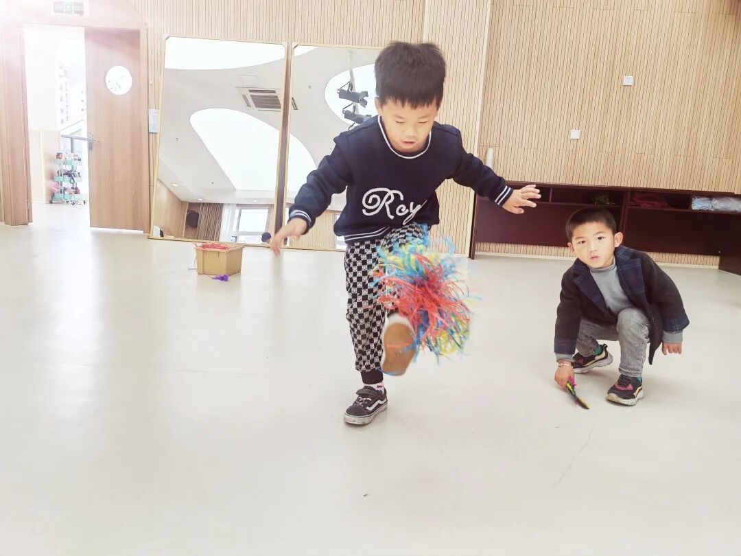 踢毽子,又叫“打鸡”,它深受小朋友的喜爱。踢毽子是一项全身性运动,需要眼、脑、神经系统和四肢的高度配合,因此它能够促进孩子全身功能的协调,并带动腰胯等最不易得到锻炼的部位,有助于增强孩子的心肺功能,提高新陈代谢。此外,在游戏过程中孩子们能被激起竞技的斗志,培养了幼儿的耐心与毅力,也提高幼儿的注意力。