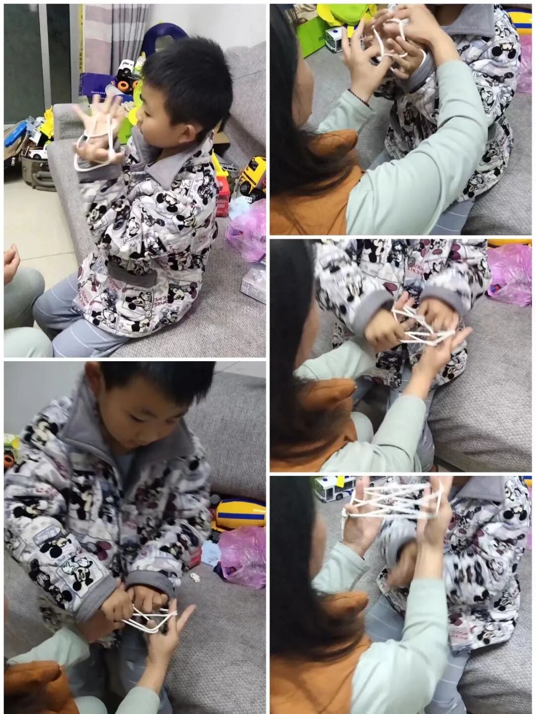 妈妈翻花绳好厉害!我得好好学学,改天回幼儿园给小朋友们露一手!