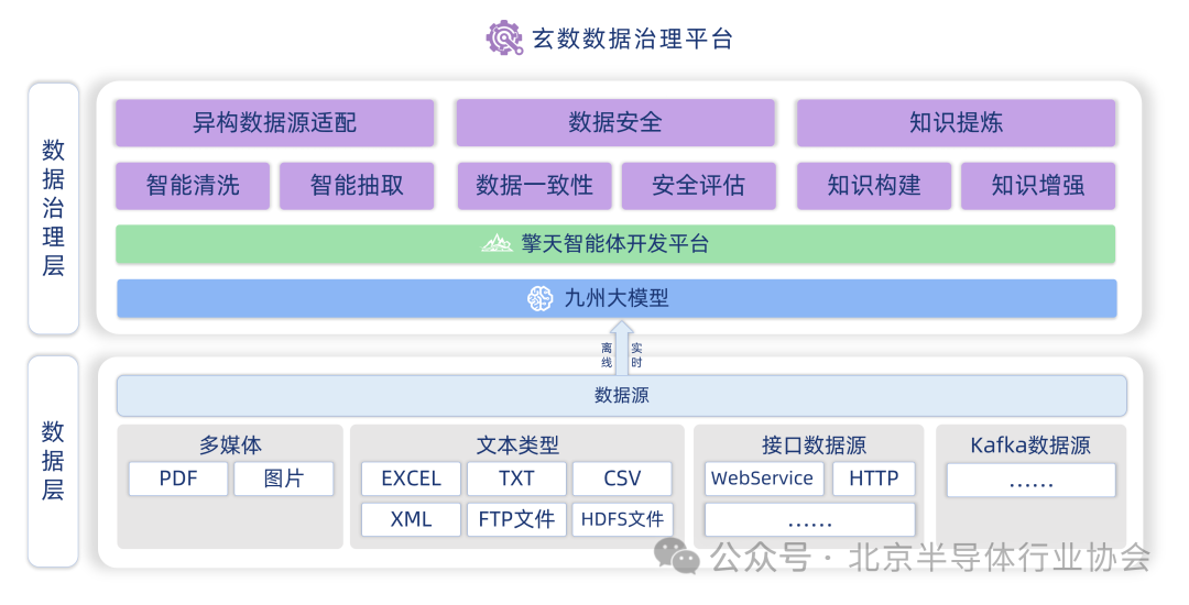 经过对政企场景进行了深入调研,希姆计算设计开发了希姆九州大模型(后文中简称九州)、希姆玄数数据治理平台(后文中简称玄数)以及希姆擎天智能体开发平台(后文中简称擎天),三者相辅相成,共同构建了一个高效的数据处理生态系统,覆盖了大模型应用开发的完整生命周期,不仅解决了单一技术手段难以应对复杂业务场景的问题,而且极大地促进了从数据到价值转化的过程。