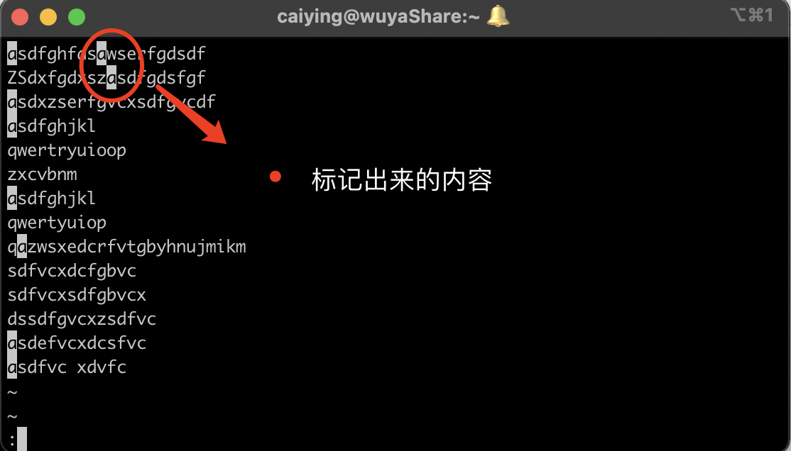 步骤二:输入?a 或者/a 按下回车 会看到标记的内容
