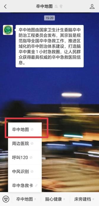 市民可以通过微信公众号“卒中地图”查询到附近的卒中救治医院,将卒中病人在最短的时间内送达相应有救治能力的医院进行规范化救治。