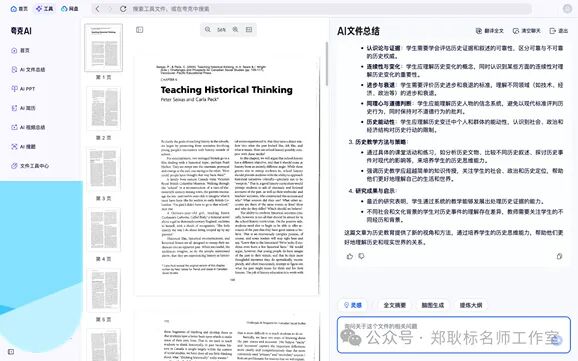 当我们面对大量的专业文档和网站内容时,夸克的智能总结功能就派上了大用场。它可以快速提取PDF、Word、PPT等文档中的核心内容,还能通过持续提问、生成脑图等方式,帮助我们更好地理解关键信息。对于视频内容,它也具备视频总结功能,让我们能快速获取视频的重点内容,节省了我们大量的时间和精力 。限于篇幅,我这里就只演示阅读文档的效果。