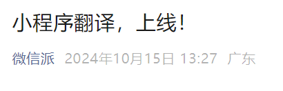 目前,小程序翻译能力已覆盖全量安卓微信及 WeChat用户,升级至安卓最新版本即可使用。iOS 8.0.51 以上版本也正在逐步灰度中。
