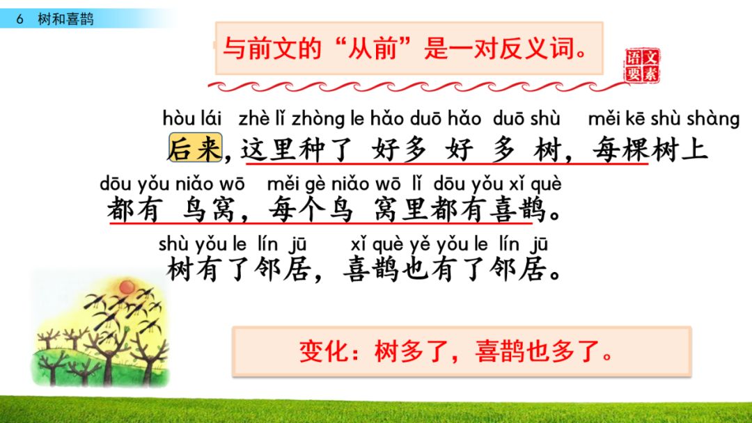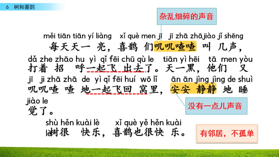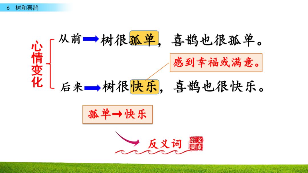 树和喜鹊快乐是因为他们都有了邻居,他们的生活充满了生机和活力。