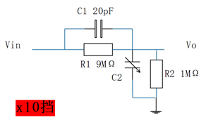 现在看X10档为什么可以,X10档对应的那个电容为20pF,按照上述方式推算谐振频率为1.4Ghz,而示波器带宽到200-300Mhz,在这个频率,电容主要还是容性的。