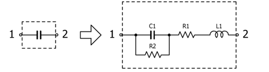 要把带宽做高,自然是这个补偿等效电路模型在高频的情况下也能有效。于是想到了电容高频特性,高频模型如下: