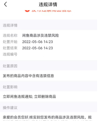 “之前搜索IP属地可以搜到很多,但这两天逐渐减少,刚刚发现搜关键词已经搜索不到了”,该商家表示。红星资本局发现,目前,闲鱼平台正在清理这些灰产交易,该商家表示,闲鱼已向他发送了违规通知,称其发布的商品涉及违禁风险,需要立即删除商品。
