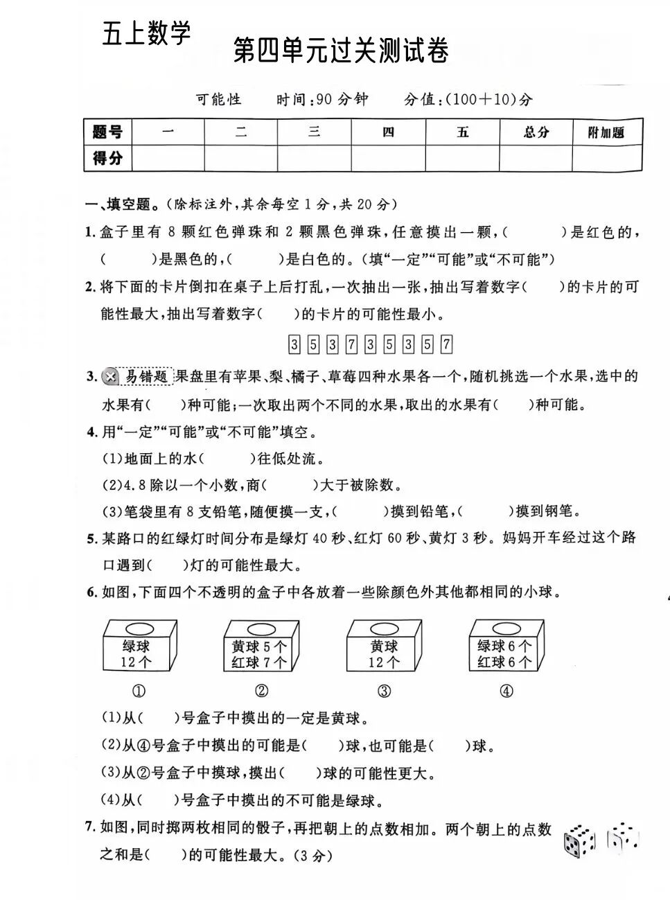 (2)从4号盒摸出的可能是绿球,也可能是红球。