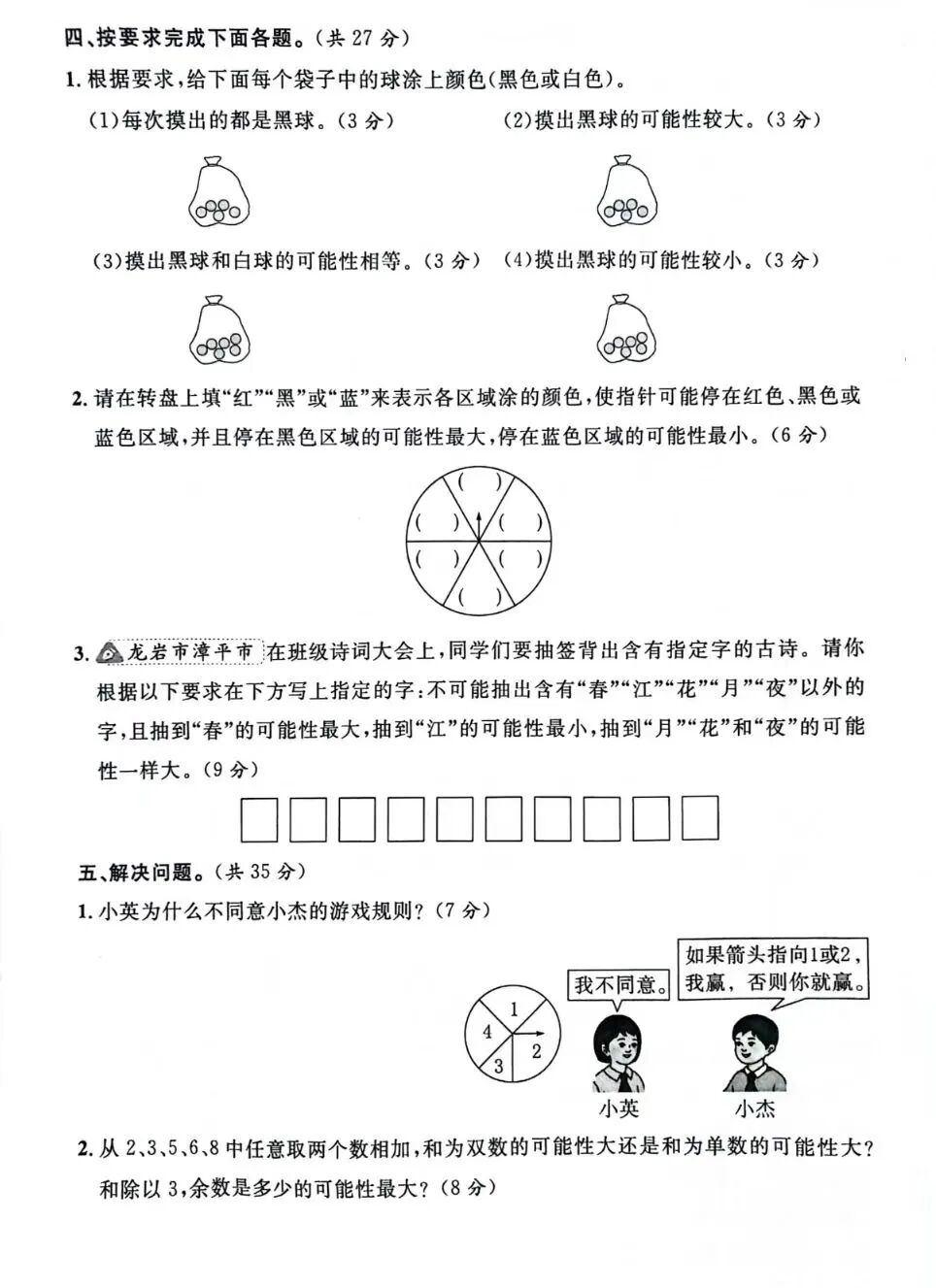 3.(1)转出数字是1、2、3、4时,明明获胜;转出数字是6、7、8、9时,丽获胜;