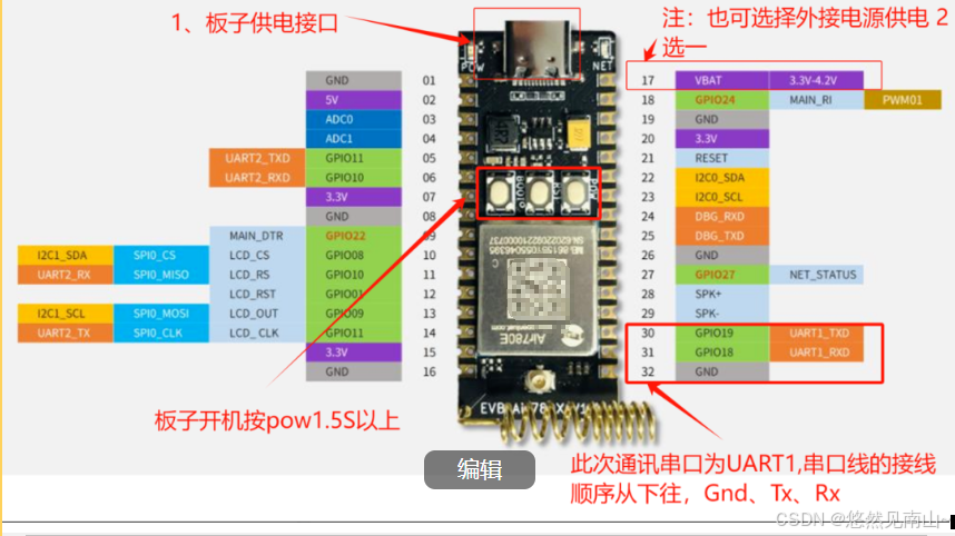 - 以上PinOut图示,对应的V1.8的开发板,版本号在板子丝印上可查阅。