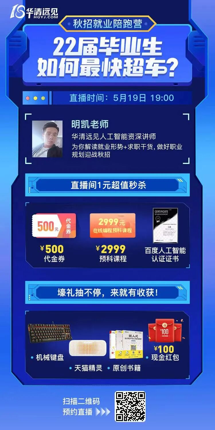 华清远见资深讲师明凯为大家准备了一场免费的公开课,为你解读就业形式。无论你是想谋求升职加薪,或是对这个行业感兴趣的应届生,都强烈推荐大家来听一听!一定可以帮到你!