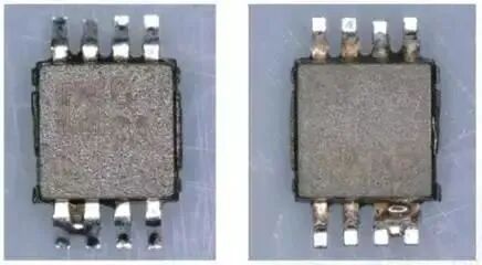 另外,丝印工艺现在的IC大厂早已淘汰,但很多芯片翻新因成本原因仍用丝印工艺,这也是判断依据之一,丝印的字会略微高于芯片表面,用手摸可以感觉到细微的不平或有发涩的感觉。
