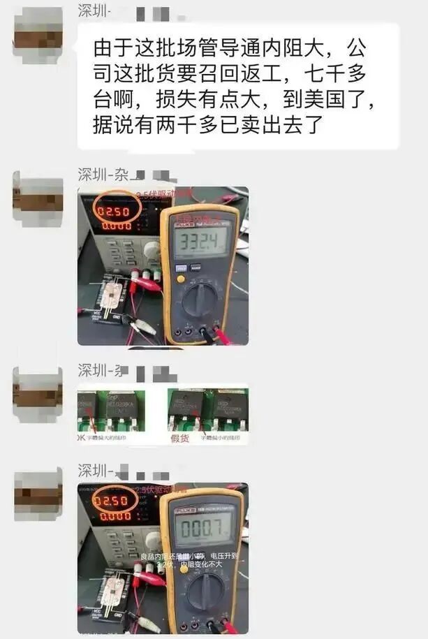 相较于其他元器件,MOS管更易造假。和常见芯片不同,通用的MOS,同一封装外观上看区别不大,但不同品牌的同一型号的MOS还是有差异的,同样规格型号的,有的标准测试环境DS内阻几百毫欧,有的几欧。