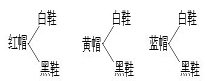 马戏团的小丑有红、黄、蓝三顶帽子和黑、白两双鞋,他每次出场演出都要戴一顶帽子、穿一双鞋。问:小丑的帽子和鞋共有几种不同搭配?
