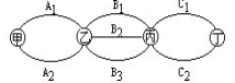 用A1,A2表示从甲地到乙地的2条路,用B1,B2,B3表示从乙地到丙地的3条路,用C1,C2表示从丙地到丁地的2条路(见下页图)。