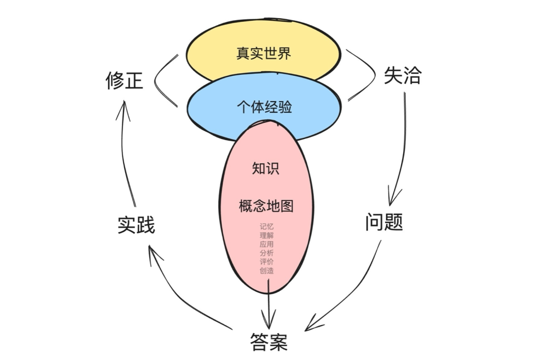 你可以询问 AI 让他举一些你自己熟悉领域和例子,帮助你学习理解什么是布鲁姆学习法。实际上我们认识世界正如下图的过程。