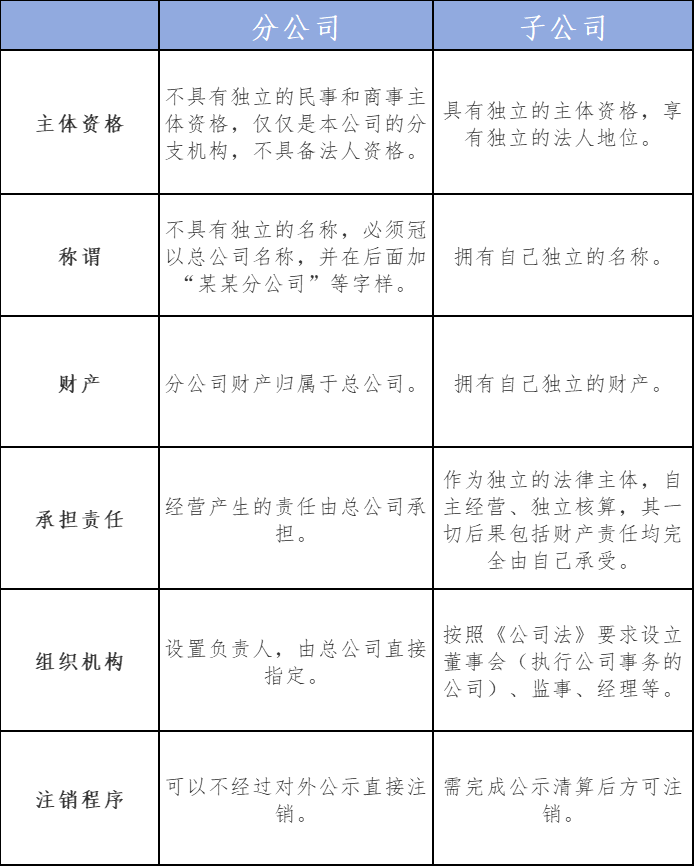 分公司属于分支机构,在法律上、经济上没有独立性,仅仅是总公司的附属机构。分公司没有自己的名称、章程,没有自己的财产,并以总公司的资产对分公司的债务承担法律责任。