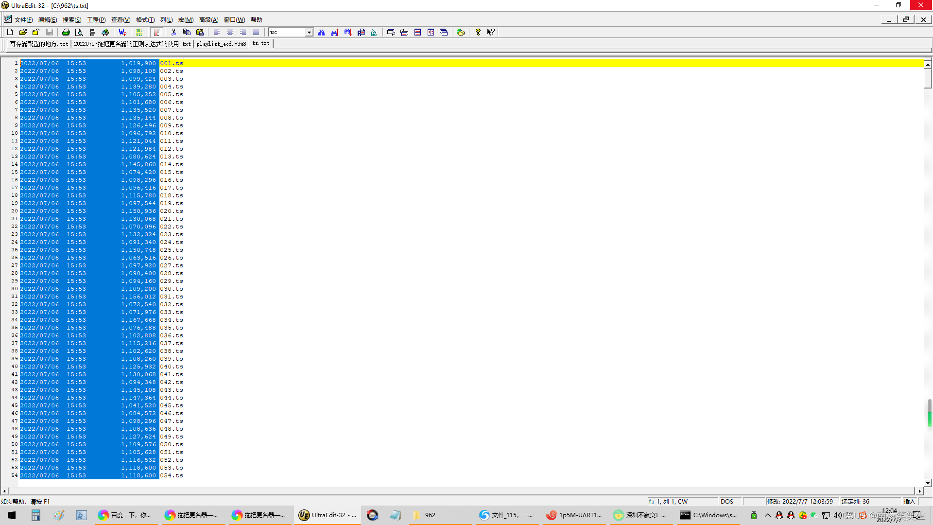 下载之后傻眼了!一个一个ts切片貌似很没有规律。