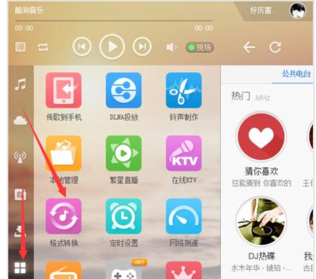 第一步:打开酷狗音乐,我们点击左侧的更多,选择格式转换