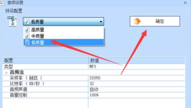 步骤3:然后选择低质量或者中质量,点击确定开始转换即可