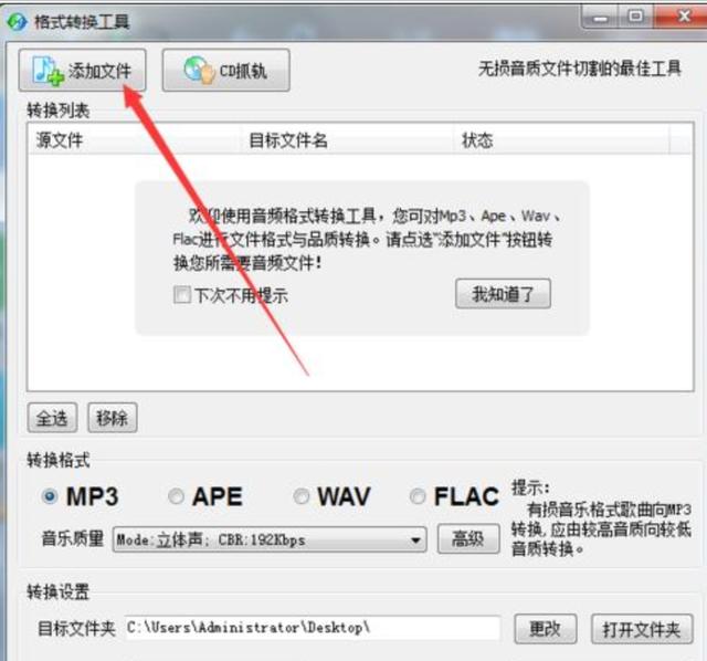 步骤2:点击添加按钮在弹框中选择需要被我们压缩的mp3文件,把这些文件导入到软件中