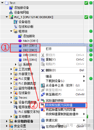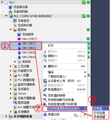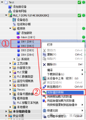 传程序块或整个项目时,同样可以通过捕获DB块的实际值到DB块的快照列来实现。