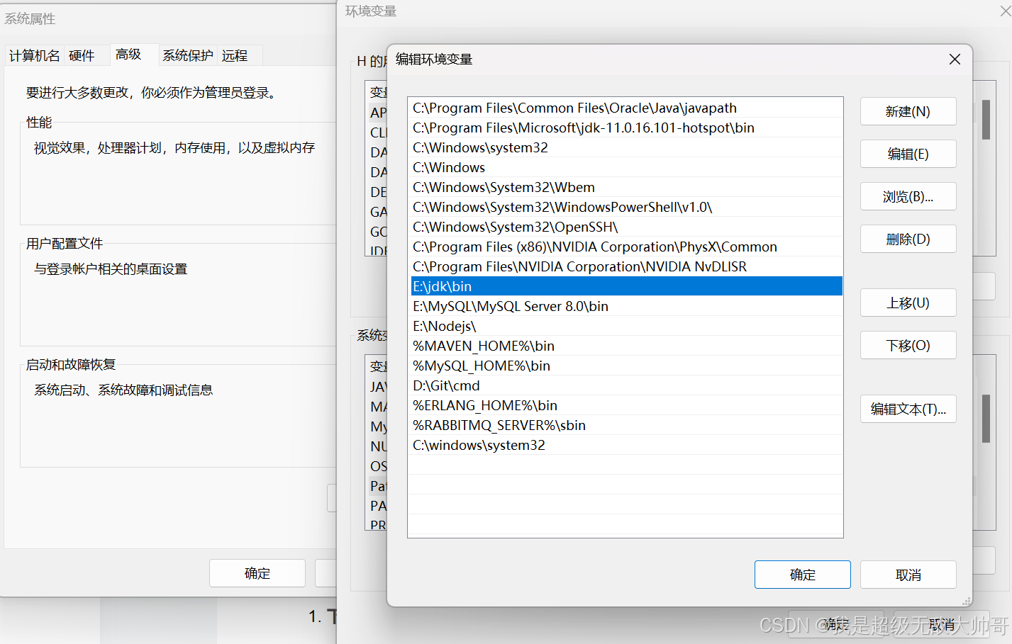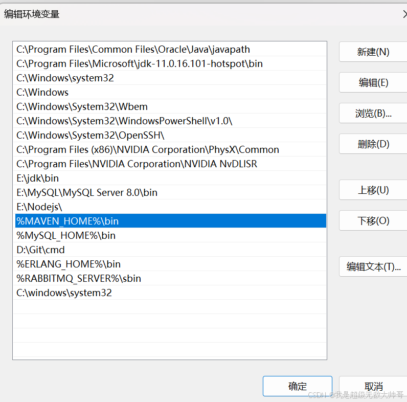 - 在“系统变量”中找到 变量,点击“编辑”,添加 。