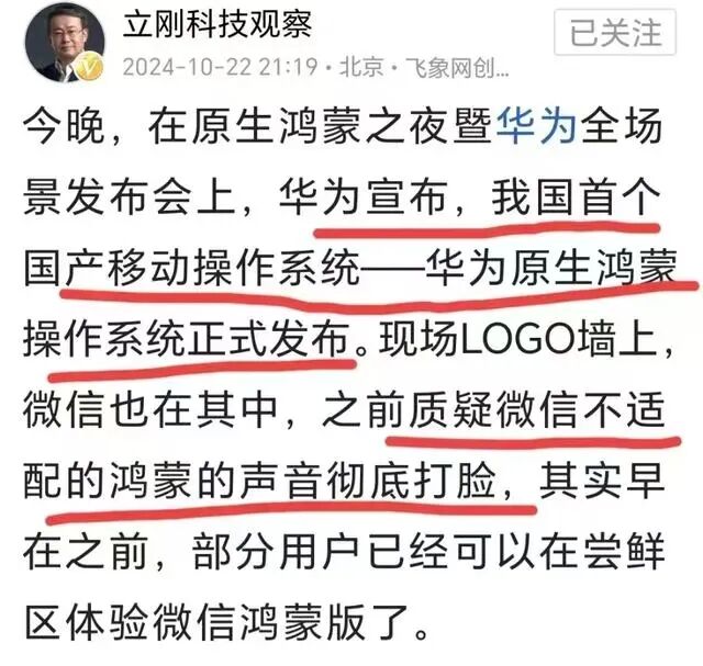 在“鸿蒙之夜”公布之后,我国知名的通信业观察家项立刚表示,这次华为的发布会,直接对那些“微信不适配鸿蒙”的声音进行了狠狠得打脸。