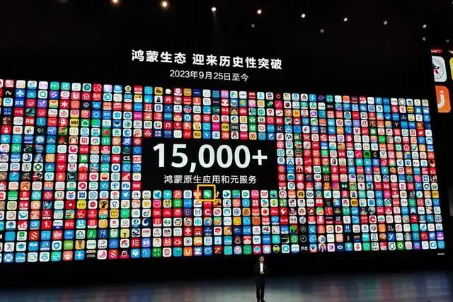 在余总演示的PPT当中,华为公布了鸿蒙系统支持的软件,高达一万五千多款,在满屏幕的图标当中,可以非常非常非常明显的看到微信的图标,就在一众软件的正中间。