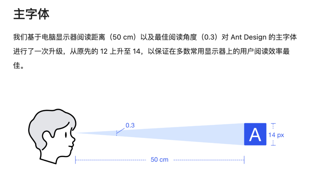 下图是 Ant Design 官网给出的图示,可见他们之前定字号是 12px,后来才加上来。