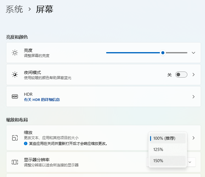 Windows可以打开设置,在「系统 > 屏幕」里找到缩放功能: