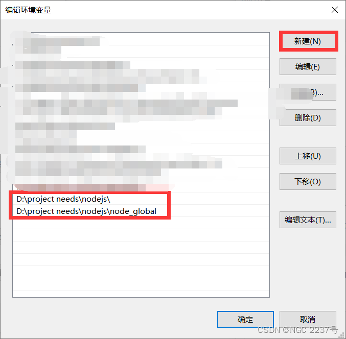 由于 node 全局模块大多数都是可以通过命令行访问的,还要把【node_global】的路径“D:project needs odejs ode_global”加入到【系统变量 】下的【PATH】 变量中,方便直接使用命令行运行,如下图所示: