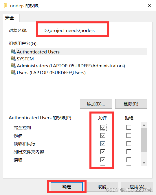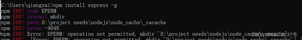 !若执行npm install express -g仍然出错的话继续将nodejs下【node_cache】、【node_global】、【node_modules】这三个文件夹的所有权限勾选,再次执行: