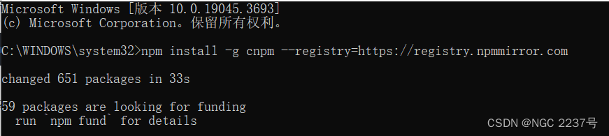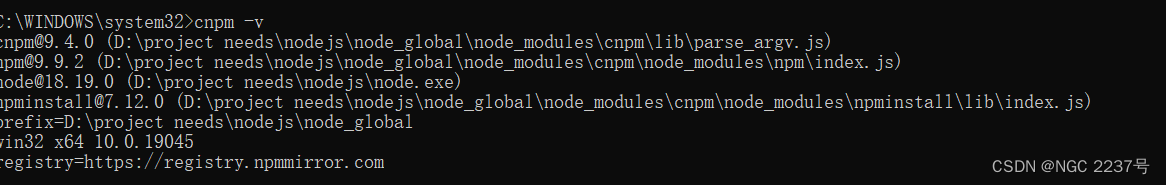 如上图所示,npm默认的registry已修改为国内镜像registry。