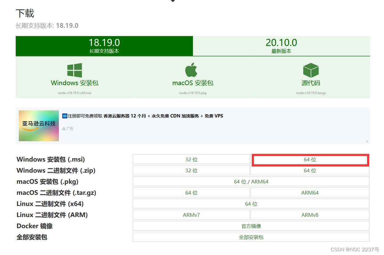 根据自身情况下载对应的安装包(本人win10系统64位电脑,故下载第一个安装包)