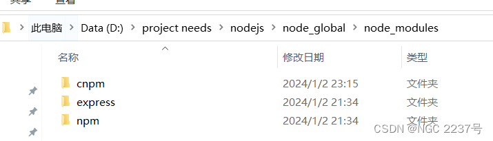 “-g” 是全局安装,不加“-g”就是默认下载到当前目录。“-g” 表示安装到之前设置的【node_global】目录下,同时nodejs会自动地在node_global文件夹下创建【node_modules】子文件夹, 即自动下载到“D:project needs odejs ode_global ode_modules” 路径下。