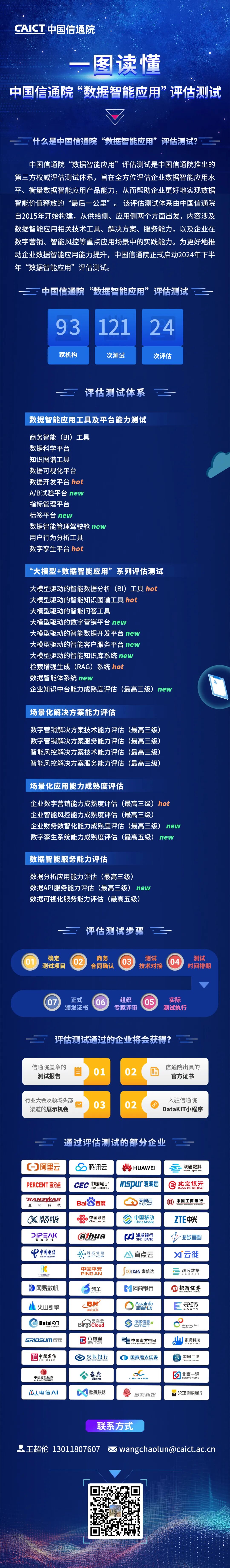 本批数据智能应用评估测试正在推进中,将于今年12月召开的“2024数据资产管理大会”为本批通过测试的企业颁发证书。