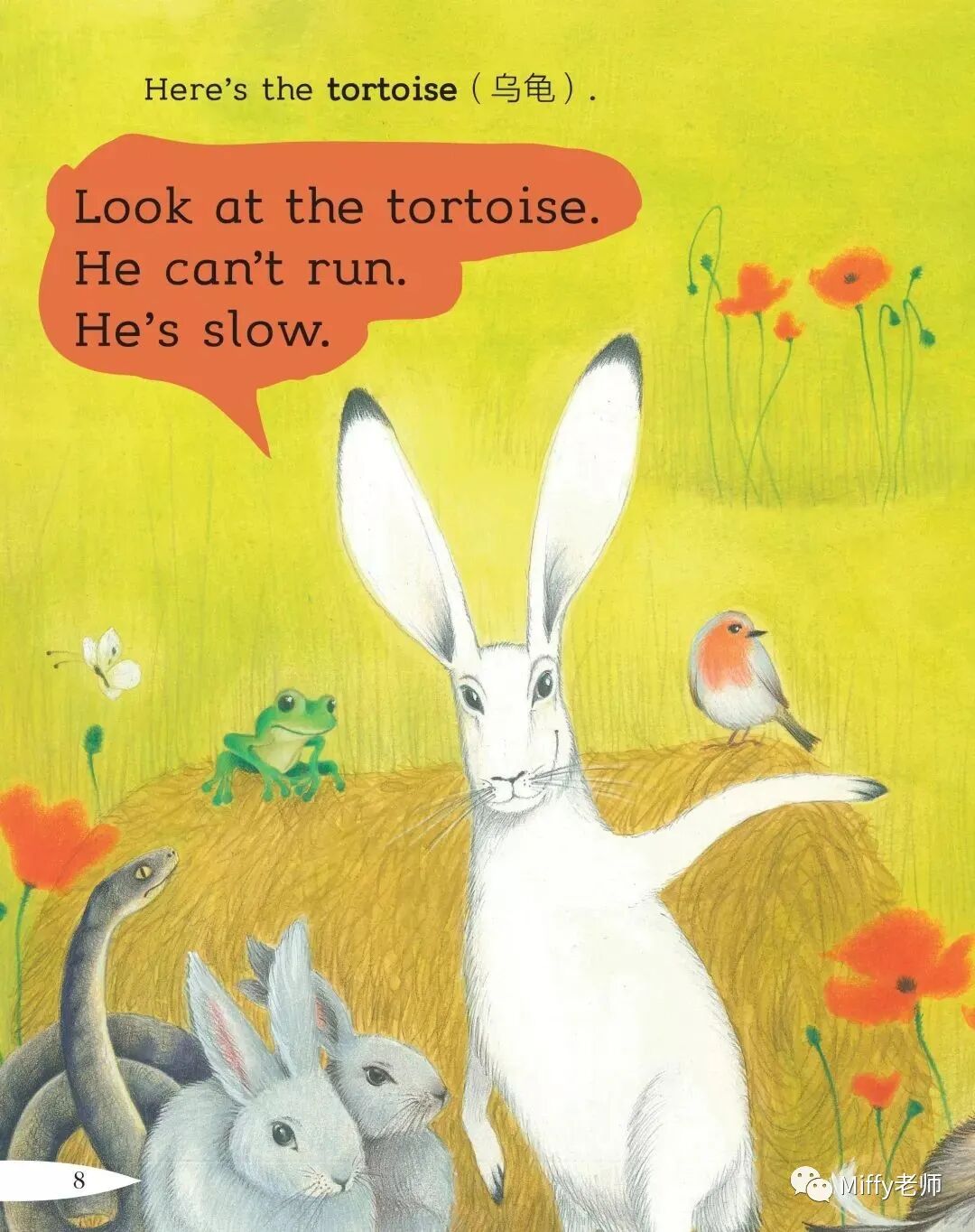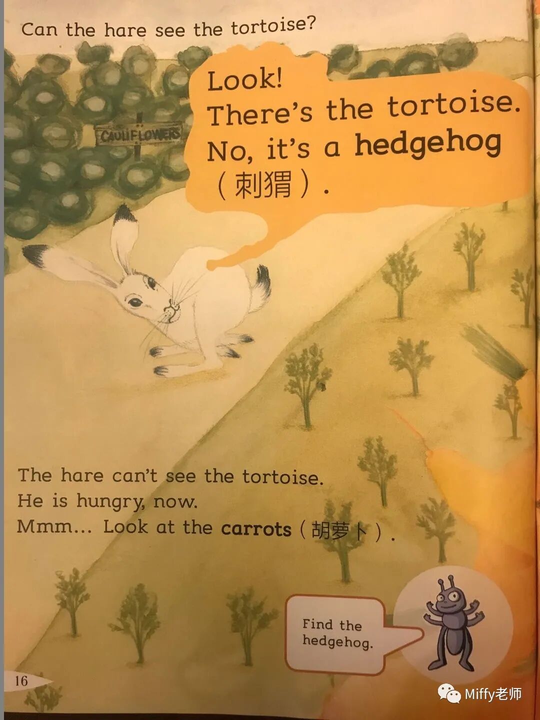 “Look! There’s the tortoise. No, it’s a hedgehog(刺猬).”